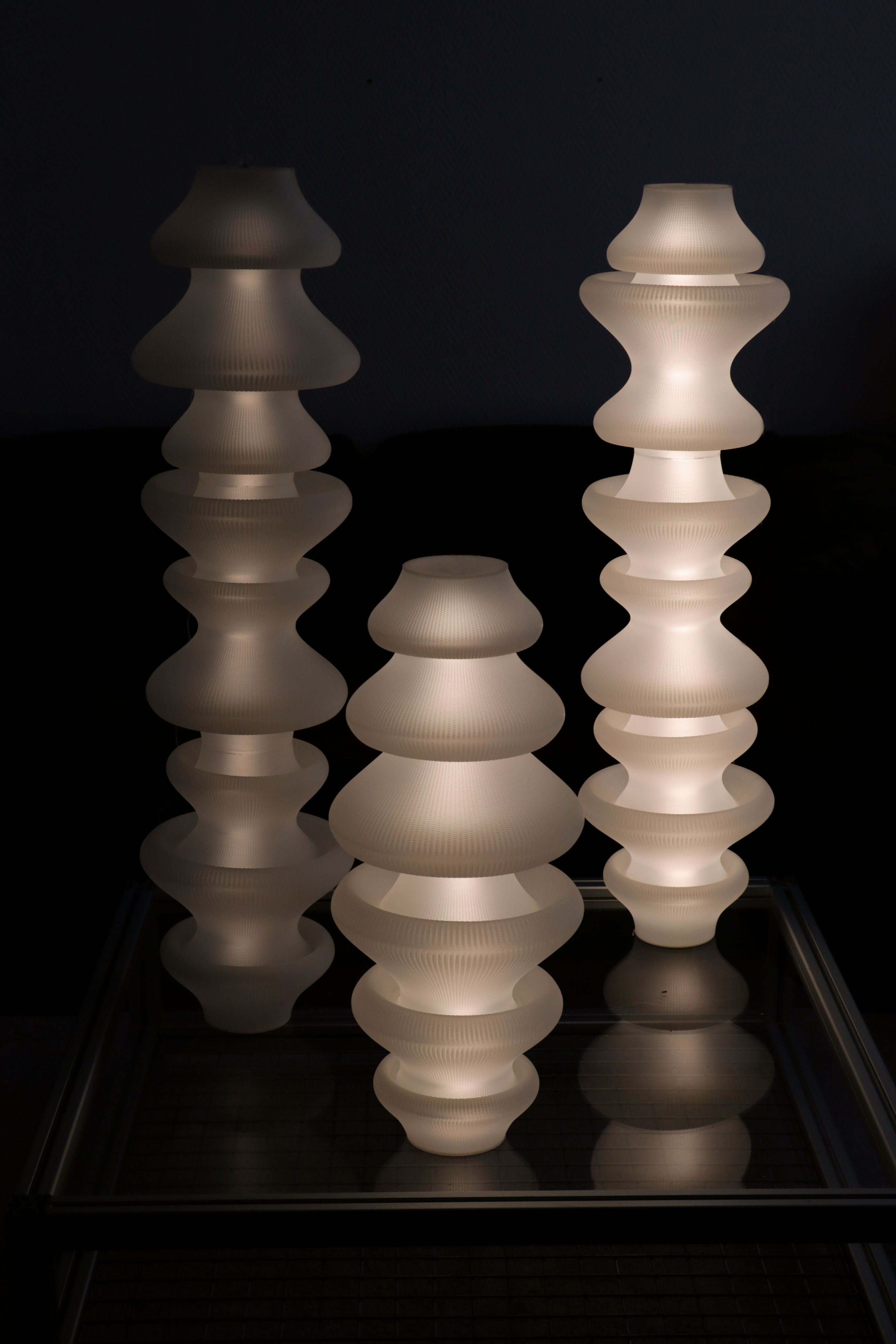 3D printed floor lamps, mixing manual gesture and digital craft.